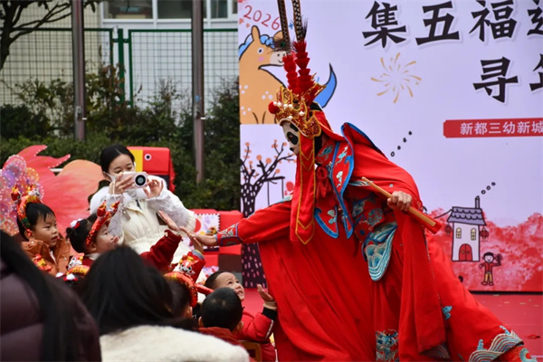 12月30日,成都市新都区第三幼儿园新城园区(以下简称:新都三幼新城园区)启航了“集五福迎新年,寻年味乐童年”元旦亲子主题活动。新年新气象,祝福新篇章。孩子们带着灿烂的笑容,写下自己的心愿,拍下一张张无比可爱的新年照!伴着冬日的暖阳,聆听新年的脚步,新都三幼新城园区告别2025年;怀抱崭新的期盼,带着欢快的笑语,一起寻年味集五福,热情拥抱2026年。