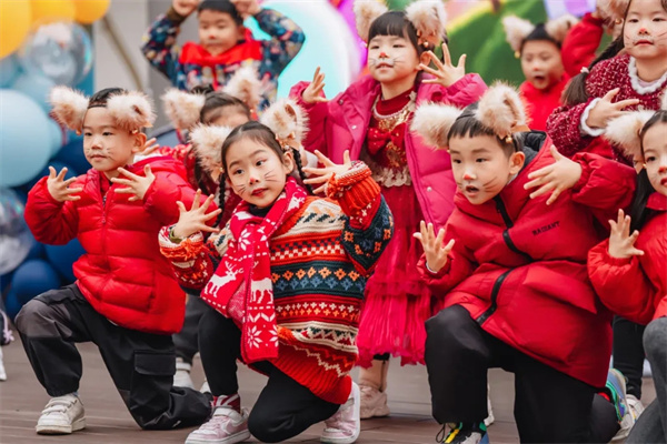 孩子们戴上亲手制作的头饰,穿上动物服装,变身成一个个可爱的小动物。