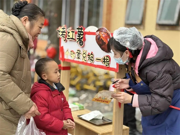 晶莹甜脆的冰糖葫芦、热气腾腾的烤红薯、香气四溢的狼牙土豆和麻辣烫……孩子们用游戏“印章”兑换美食,集市里,每个人脸上洋溢着满足与幸福的笑容,一起品味着热闹的年味!8kV四川教育在线-四川教育讯息
