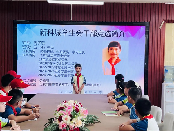 少先队小干部换届竞选圆满落幕,40名候选队员同台竞技,展现新科少年蓬勃朝气。
