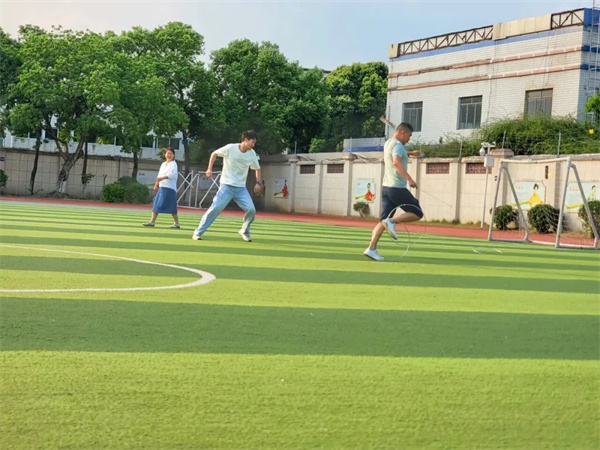 教师休闲赛事精彩纷呈,滚铁环障碍接力、袋鼠跳、跳大绳等活动,为教师们增添休闲乐趣、凝聚团队活力。