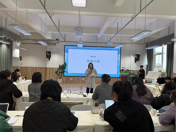专家指导环节,成都市新都区教科院附属幼儿园党支部书记、园长、成都市及新都区名师工作室领衔人杨小芳高屋建瓴地将师幼互动优化置于《幼儿园保育教育质量评估指南》的整体框架下审视。她强调,情感是互动的基石:高质量的“教学支持”离不开温暖、积极的“情感支持”;观察与倾听是前提:倡导“仔细倾听”,真正发现并回应幼儿的需求;系统思维是关键:提醒教师避免机械套用策略,应基于对儿童与内容的深度理解,灵活、个性化地互动;持续学习是路径:鼓励教师深入开展数学核心经验与儿童学习行为的研究,实现真正的“深度学习”。最后,展望未来,杨小芳表示希望工作室成员能围绕师幼互动的各个维度给大家带来更多优秀经验分享。