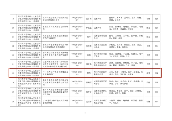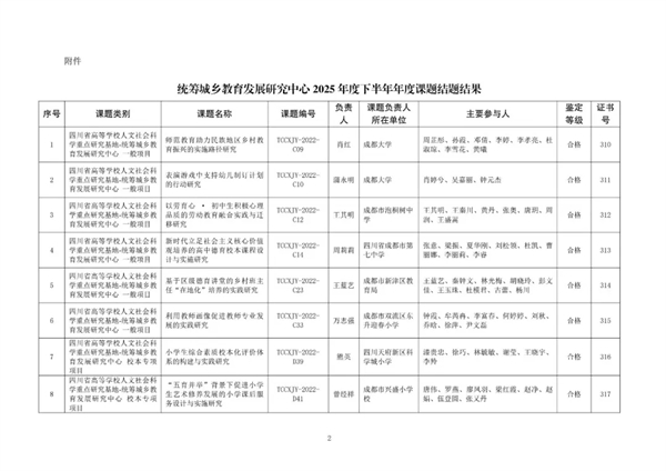 近日,四川天府新区华阳实验小学(以下简称:华阳实小)传来科研捷报,该校承担的省级课题《“一校两制”背景下教师融合发展策略研究》顺利通过结题验收,在统筹城乡教育发展研究中心2025年下半年度课题结题评审中脱颖而出,荣获优秀等级!