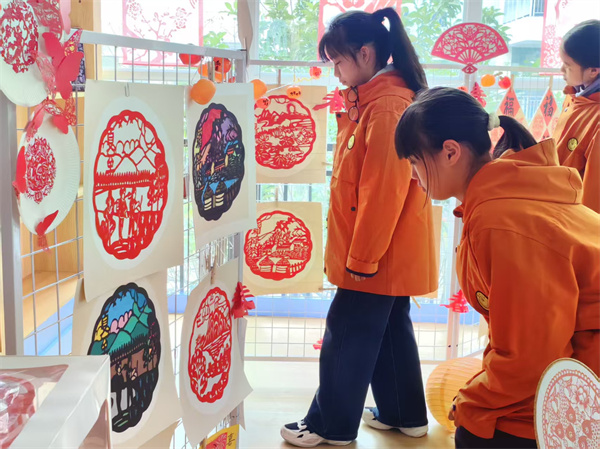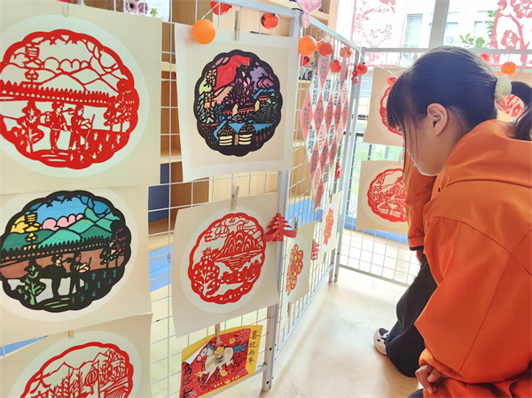 从触摸汉字演变的纹路,到剪出骏马奔腾的轮廓;从绘就“中国魂”的笔墨丹青,到叩问“时间故事”的四季斑斓——这一系列校园文化展,像一串晶莹的珍珠,串联起孩子们对传统的感知、对文化的热爱与对未来的想象。教育,正是在这样的浸润中悄然发生:让古老的字形在扇面上苏醒,让节日的寓意在剪刀下延续,让抽象的时间在色彩中流淌。当毕业生重返母校、与学弟学妹的作品合影时,文化的接力棒已在笑靥间悄然传递。愿这份从“笔尖”“指尖”流淌出的文化自信,继续陪伴孩子们,走向更广阔、更深远的人生风景。(赖波 通讯员 马琳莉)