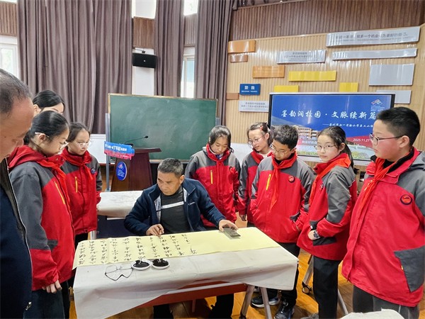 最后,全体嘉宾、领导与师生合影留念,为本次活动画上了圆满的句号。墨香不会散,文脉永流传。这场充满温度的书法进校园活动,不仅为七一实验小学的师生们带来了一场文化盛宴,更在孩子们心中种下了热爱传统文化的种子。相信在未来,这些种子将长成参天大树,让中华文脉在新一代手中继续焕发光彩。(黄小林)