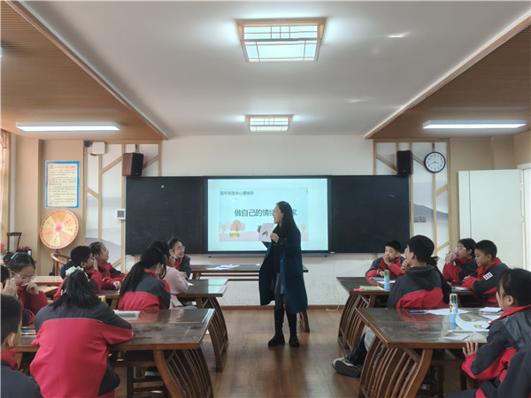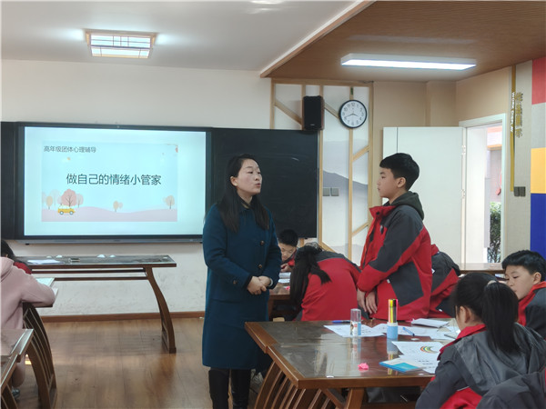 2025年11月27日,崇州市七一实验小学在书画室开展了一场别开生面的高年级团体心理辅导活动。心理老师郑红梅带领24名五、六年级学生,通过“做自己的情绪小管家”主题团辅,引导学生认识情绪、接纳情绪,并掌握实用的情绪调节技巧。