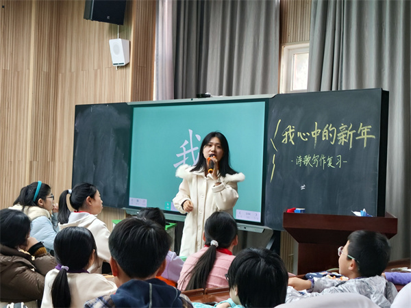 更值得欣喜的是,部分同学的原创诗歌登上跨年双子塔展示屏,在璀璨灯光中与城市共庆新年,让诗意被更多人看见,为新年增添文化韵味。