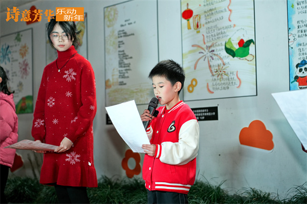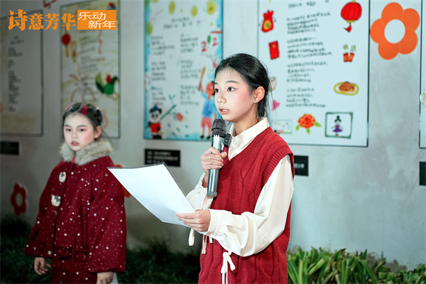 近日,成都高新区芳草南区小学芳草诗社学子带着对文字的热忱与新年期盼,亮相高新区“诗意芳华·乐动新年”活动舞台,绽放少年风采!