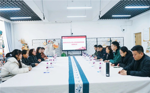 成都文理学院教育学院的领导干部接待了大同小学团队,并举行了小型座谈。双方就办学情况、学科特色等互作介绍,并聚焦学校“思政一体化建设”“艺术学科课程建设”“学校品牌活动”进行了分享与思想碰撞。