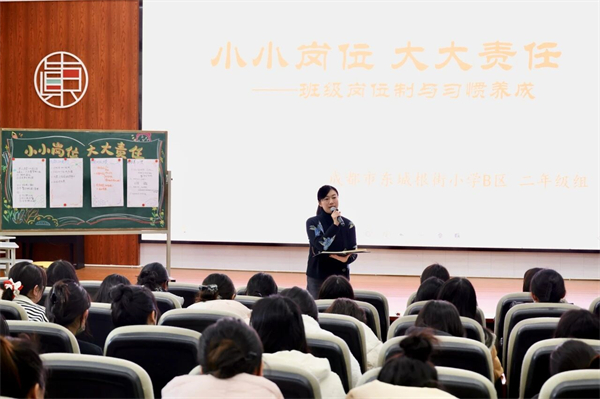 班级岗位建设不仅是简单的任务分工,更是培养学生责任感,促进全面发展的重要途径。2026年1月6日,成都市东城根街小学举办了“小小岗位,大大责任”德育主题分享活动,全校班主任围绕岗位育人的策略展开了深入探讨。贺心力老师主持活动。uXu四川教育在线-四川教育讯息