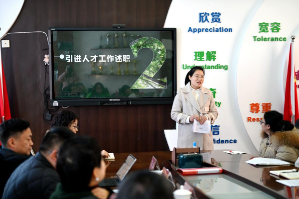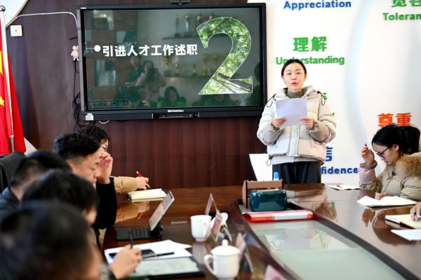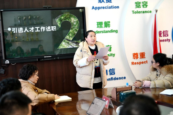 会上,引进人才代表依次进行工作述职。大家结合自身教学实践与成长经历,分享着入职以来的点点滴滴:从初登讲台时的忐忑与探索,到“老带新”机制下前辈们手把手的指导与快速成长;从一遍遍打磨教材教法、优化教学策略,到主动参与集体备课、课题研究的收获与感悟。每一句真挚的话语、每一个鲜活的案例,都藏着对教育事业的热爱与坚守,也满含着对学校提供优质平台与悉心培养的感恩之情,彰显了新时代教育人才的责任与担当。