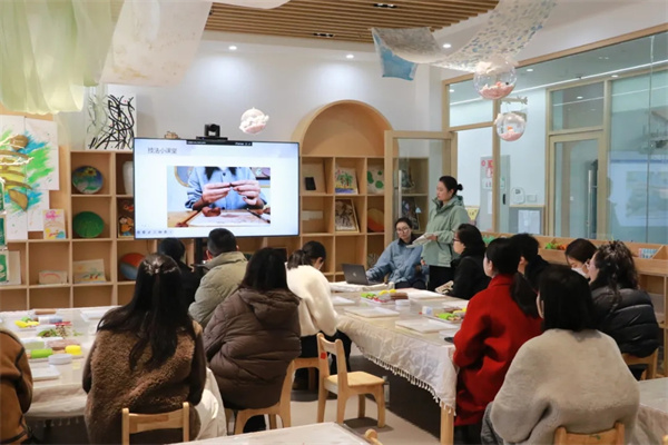 紧接着,成员齐聚四季童画馆,由大二班夏联老师开启了一场关于“幼儿园泥塑活动的认知、技法与实践”的现场教研活动,通过理论认知、学习技法、实际操作,让家长们明确了教研活动背后蕴含“以幼儿为本”的教育价值。