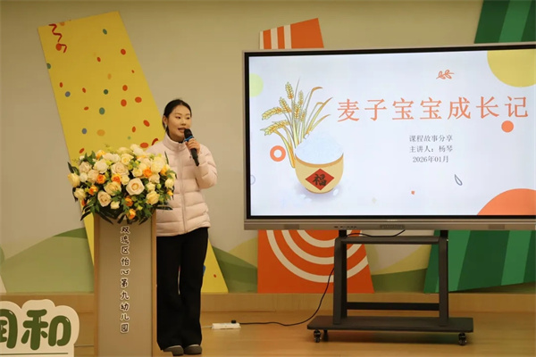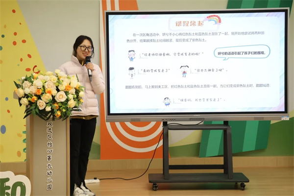 保教负责人温敬老师以《润物无声 和合共生》为题,阐述了“润和”课程建设的背景基础与发展脉络、发展历程与阶段成果、课程理念体系与目标定位、课程体系架构与实施策略、课程评价与质量保障机制等内容,并展望了课程的未来发展。