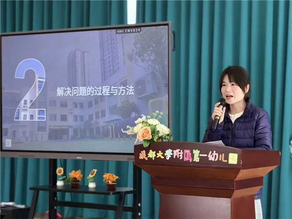 随后,在三楼多功能厅开启专题分享。园点负责人季薇以《同育悦美之花 共谱筑梦乐章》为题,系统介绍集团办学理念、发展历程与课程特色。李易珊老师聚焦《文化赋能固根基 “悦能”队伍提品质》,分享集团文化建设与教师专业发展经验。赵小莉、牟兰老师紧扣区级课题,结合案例拆解音乐游戏设计要点,给出可落地的实操策略,让在场教师受益匪浅。