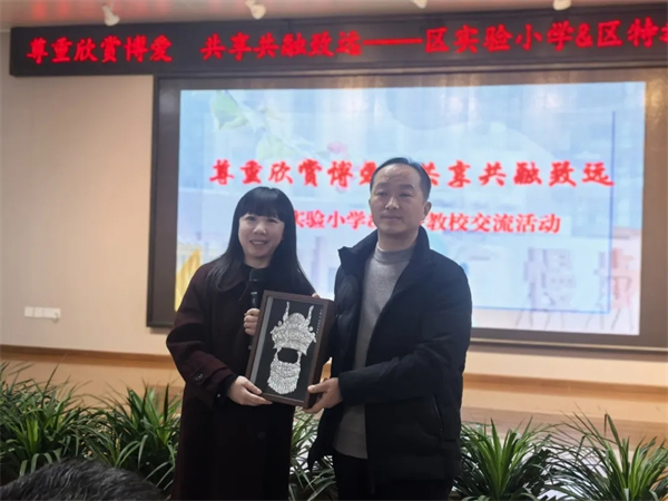 活动最后,闫瑾代表学校,向双流区特殊教育学校赠予了一份精心准备的作品《银冠瑶光》,这份礼物承载着两校之间的深厚情谊,更象征着普特教育携手共进的美好愿景。