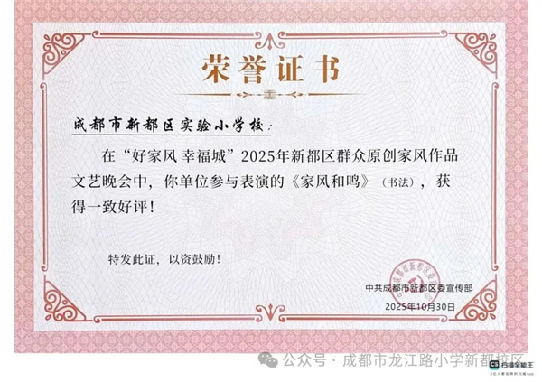 这些荣誉,标志着龙江路小学新都校区在“愉快教育”引领下,于德育、美育、少先队建设及家校社协同育人方面取得了扎实成效。