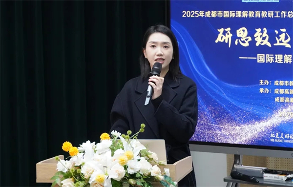 活动在学校乐团与合唱团奏响的《玉盘》旋律中庄严开幕。学校党支部书记、校长戚谊以《破界·共生:未来公民的全球素养与中国回答》为题致辞,阐释学校“让童年与时代同频,让成长与世界共融”的育人愿景,强调教育是文明对话与生命共鸣的历程。成都市教育科学研究院国际理解教育教研员雷沛瑶作年度总结,回顾了工作背景,交流了本年度市教科院在常规教研工作、赛研融合培育师资队伍、学术品牌塑造及全域资源建设方面取得的扎实成果,并展现了“跨界协同、联合指导”的教研路径特色、“数据驱动、精准评价”的循证教研特点及赋能教师专业成长的成果转化机制。未来,成都市教科院将持续深化课程融合,构建长效机制,培养具有民族情怀、全球视野、跨文化交流能力与责任担当意识的时代新人,为教育高质量发展贡献力量。