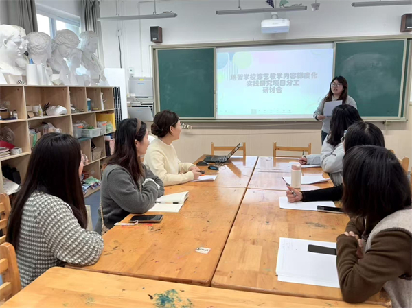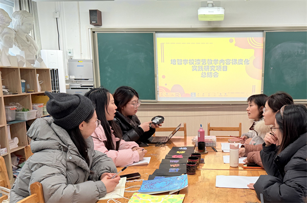 针对以往漆艺教学断层问题,项目组根据《培智学校义务教育绘画与手工课程标准(2016年版)》,初步梳理出“造型·表现”“设计·应用”等领域与漆艺教学的结合点,构建符合学生认知与能力发展规律的教学内容,规划了从感知到专业的四阶路径,尝试引入“替代材料”策略,确保中低学段学生安全启蒙。各教研组协同研讨,制定了覆盖幼儿班至职高的年级核心主题表,让漆艺学习层层递进、有效衔接。