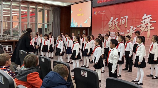 四楼阶梯教室化作艺术的殿堂,“艺韵飞扬,青春共鸣”篇章精彩开启。吴老师指导的管乐团奏响恢弘旋律,悠扬乐声承载着中法建交精神,跨越语言隔阂直抵人心;啦啦操队活力登场,花球舞动间尽显五丁学子的阳光自信;李树怡、王雯老师带领合唱团的孩子们用清澈童声吟唱美好,将纯真梦想与真挚友谊融入歌声,现场掌声此起彼伏。不同的艺术形式在此碰撞交融,谱写着中外文化互鉴的动人乐章。