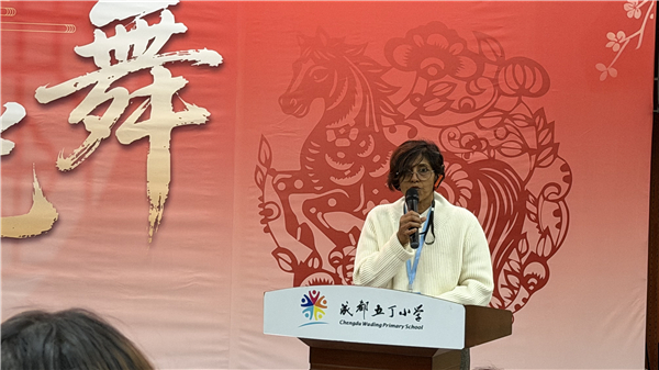 艺术展演后,“心声交融,愿景共筑”环节温情上线。刘春华代表五丁小学致辞,传递着对教育的热忱与对友谊的珍视;法国圣丹尼斯学校领导也分享了办学理念,字里行间满是对跨文化交流的期待。尽管语言不同,但双方对学生成长的关爱、对文化互鉴的追求深深共鸣,让教育的初心在交流中愈发坚定。
