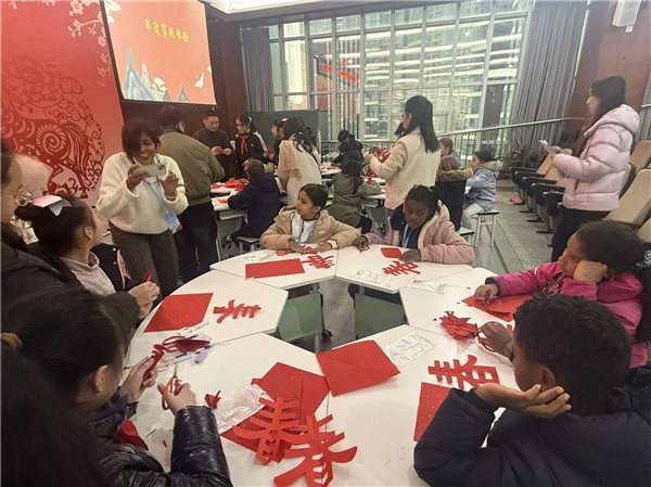 最令人期待的非遗剪纸体验环节,将交流推向高潮。在非遗老师的指导下,中法师生围坐一堂,红纸在指尖翻飞流转。中式吉祥纹样与法式浪漫图案相映成趣,每一刀裁剪都藏着对友谊的祝福,每一个作品都是文化交融的见证。剪刀开合间,文化的种子悄然发芽,心灵的距离愈发贴近。