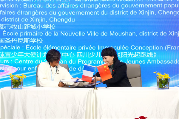 近日,成都市新津区牧山新城小学与法国圣丹尼斯学校成功举行“中法友好学校签约仪式暨线下交流访问活动”。双方师生代表欢聚一堂,共同见证了两校教育合作与文化交流的重要时刻。