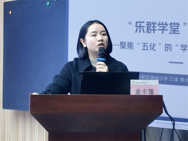 锦城小学江凌副校长与查水莲老师带来《“乐群学堂”之蝶变——聚焦“五化”的“学为中心”课堂变革》