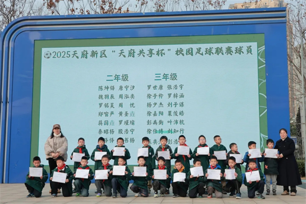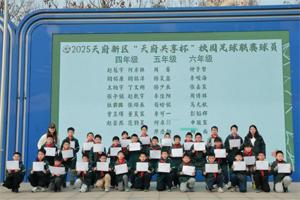 近日,四川天府新区第五小学(以下简称:天府五小)举行了校园足球联赛颁奖盛典,共同见证2025天府新区“共享杯”校园足球联赛健儿与天府五小第五届“光芒杯”校园足球联赛获奖者的荣光时刻。