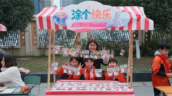 班级自主策划的特色主题市集成为活动亮点。“串珠坊”“素扇填漆社”“童趣彩脸屋”“吉祥拓印屋”等项目由学生自主运营,融合传统工艺与现代创意,展现出学生的综合实践能力与团队协作精神。