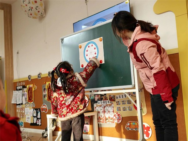 除了热血的运动环节,趣味教学活动同样亮眼。本次以“美食派对”为主题开展数学活动,老师们将环形点数融入食物场景,孩子们化身小美食家,在游戏中动手操作、专注点数,轻松掌握技巧,家长也亲眼见证了孩子在集体活动中的专注与进步。