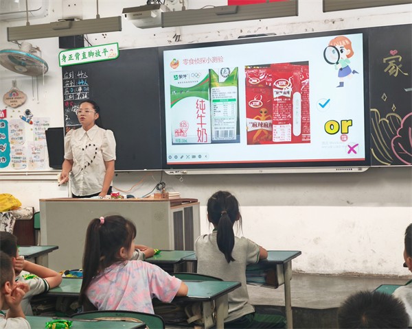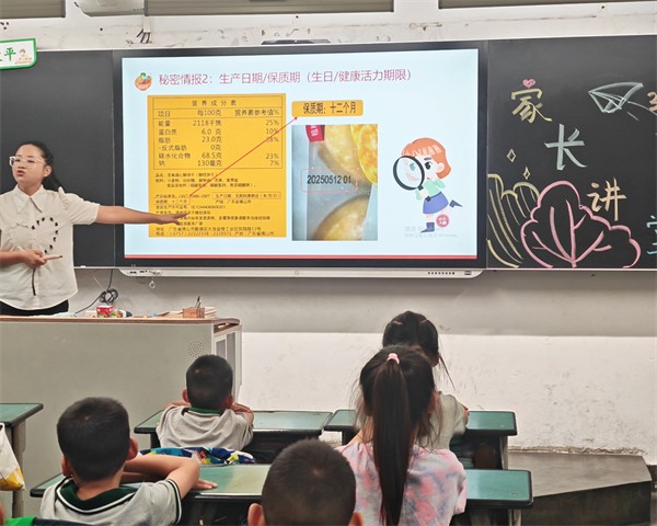 阚梓琳妈妈以“小侦探”情境互动模式,引导同学们学会辨识零食包装信息、认识食品添加剂、理解营养标签。孩子们在趣味探索中树立了健康的饮食观念,筑牢了食品安全意识。