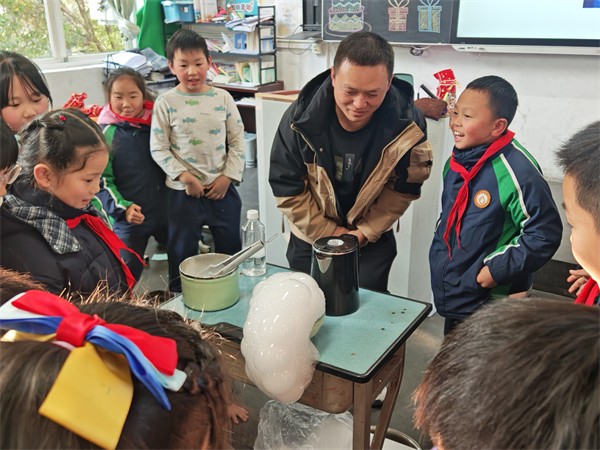 最后一期讲堂以“干冰实验”为主线,孩子们在姚婷婷爸爸的带领下走进奇妙的化学世界。现场气氛热烈,孩子们在观察、提问与惊叹中感受科学的魅力,激发了对自然现象的好奇心与探索欲。