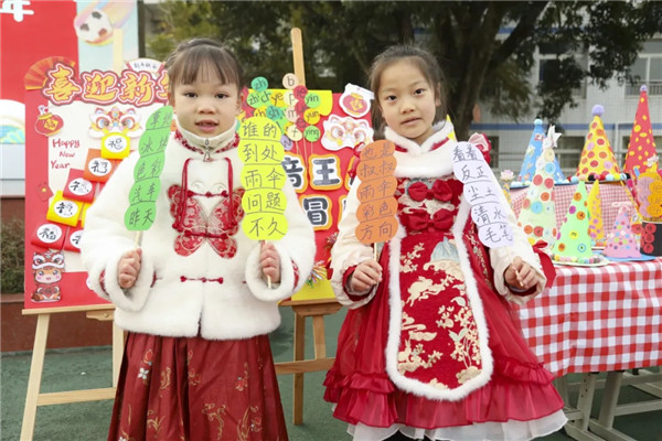 艺术与运动的旋律同样热烈。“音”你精彩以“小马踏歌”为引,孩子们用清脆童声唱响快乐;美术千变万“画”,五彩画笔勾勒出对新年的憧憬,尽显艺术素养。体育“遥遥领先”赛道上,“骏马欢腾”般的奔跑、跳跃,既考验体能与协调性,更张扬着童年的活力。劳动关卡则以“井井有条”“心灵手巧”为主题,包含整理书包、生活技能问答等活动,孩子们的动手能力不仅得到提升,还养成了良好的生活习惯,让劳动教育融入成长点滴。