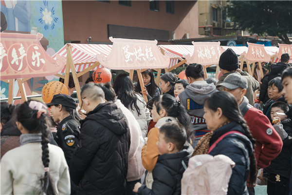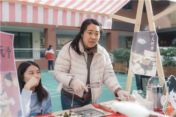 大家手持“校园币”,穿梭于各摊之间,或投壶中彩,或猜谜得奖,或品尝甜糯,笑语声声、暖意融融。