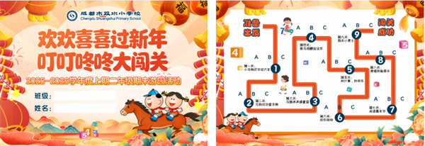 本次活动突破传统纸笔测试模式,以“闯关集章”的方式,将学科能力测评转化为一个个贴近生活、充满年味的趣味游戏。每一关都紧扣学科核心素养,注重考查孩子们在实际情境中运用知识、解决问题的能力,真正实现“减负不减质,乐考促成长”。