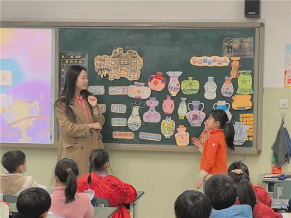 在《穿编小挂饰》一课中,武老师通过巧妙融入校园独有的IP形象,营造出富有代入感和趣味性的情境化教学氛围,有效提升学生的参与热情;在《瓶子大变身》一课中,蔡老师则充分利用AI辅助教学设计工具,不仅优化教学流程,还推动学生作品实现从手工创作到数字化成果的转变,总结出名为“AI全流程赋能纸鸢美育”的创新型教学模式。