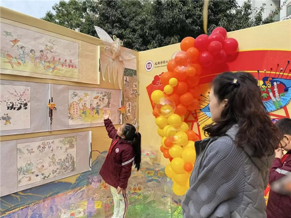 优秀的美育成果不仅需要在校园内生根发芽,更应当积极走向更加宽广的展示与交流平台。近期举办的“2026锦江校园新年音乐会”系列活动,在实践工作坊与成果展览环节,东华小学美术组的老师们主动牵头,带领学生带着融合数智技术的纸鸢美育课程成果,走进四川师范大学附属中学成龙分校的活动现场,献上了一场别开生面的区级交流展示。