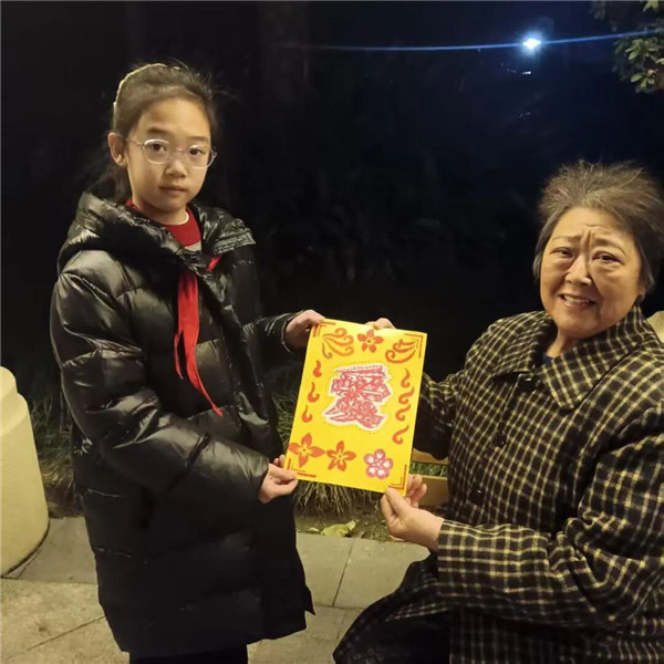 活动结束后,部分同学带着亲手剪制的家文化主题窗花走进社区,赠送给孤寡老人。一张张红纸剪出的不仅是图案,更是尊老敬老的传统美德与优良家风。这份充满温度的传递,也让美德的种子在孩子们心中悄然扎根。