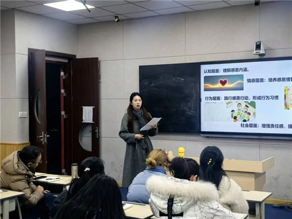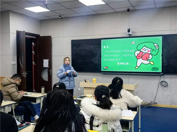 潘俊如老师聚焦“积极心理学驱动下二年级学生自我效能感提升”课题,阐述了通过积极情绪激发、微观成功积累等举措构建班级生态式培养模型的实践探索。