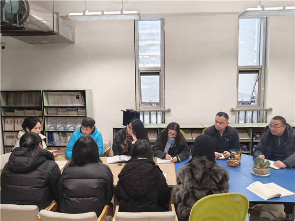 体育学科总结会在图书馆召开,全体专兼职教师参会。