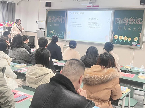 活动伊始,各班班主任以温柔而坚定的话语,细致复盘了一学期来班级的成长轨迹。从学习习惯的点滴养成、纪律常规的扎实落实,到集体活动中的并肩同行,老师们细数着每一位孩子在学业、品行、集体意识上的进步,也客观剖析了班级发展的提升方向,让家长们清晰看见孩子的蜕变与成长。各学科教师结合课堂表现、学业反馈,精准解读学生的学科掌握情况,摒弃空洞说教,给出了贴合年龄特点、具体可操作的假期学习规划,引导家长科学陪伴、智慧护航,助力孩子在假期里巩固知识、提升能力。
