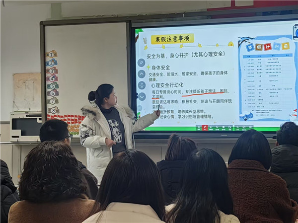 安全护航,伴爱成长。会上,老师们还为家长开展了系统全面的假期安全教育培训,围绕交通安全、消防安全、户外与旅行安全、居家健康安全、网络安全与防诈骗、特殊场景应急防护六大核心板块,结合真实案例拆解风险要点、讲解防护技巧,引导家长切实履行监护责任,织密织牢假期安全防护网,为孩子的健康成长筑牢屏障。