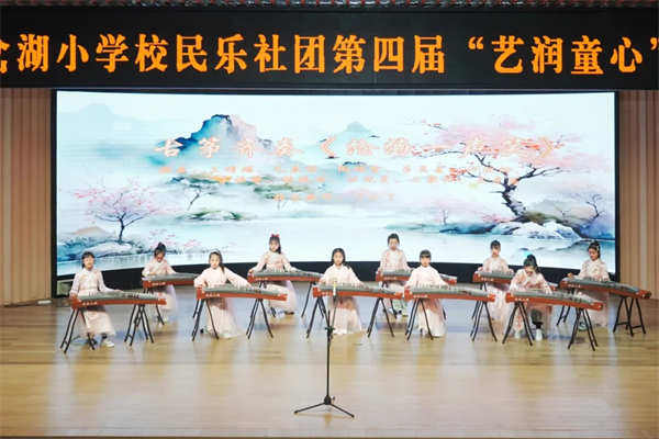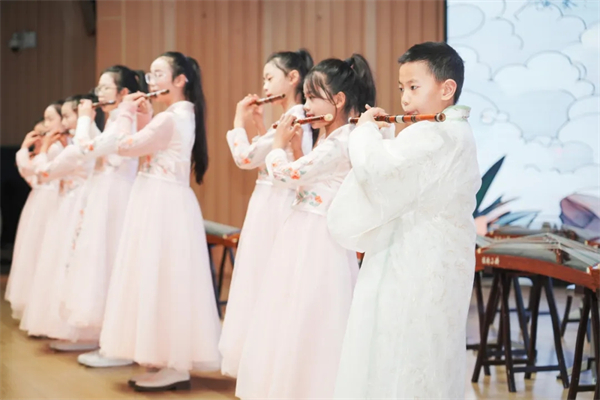 当马年新春的脚步临近,成都东部新区三岔湖小学校的蓝色环湖大厅里一场属于孩子们的民乐盛宴温暖开演。fJC四川教育在线-四川教育讯息