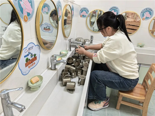 环境清扫与消毒工作是幼儿园日常运营中的核心要务。全体教职工严格遵循卫生消毒管理的规范标准,以严谨细致的态度,对幼儿园内的教室、活动区域、户外场地及厨房等每一处空间进行全面且深入的清扫与消毒作业,致力于为孩子们营造一个既安全又舒适的成长环境。