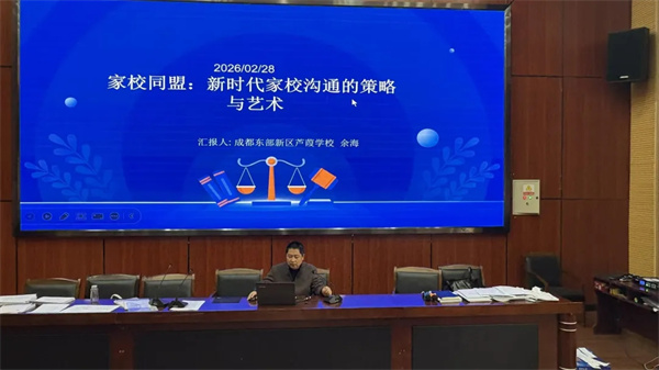 随后,余海老师带来《家校同盟:新时代家校沟通的策略与艺术》专题分享,为教师们搭建起高效家校沟通的“桥梁”。他结合新时代教育背景下家校关系的新变化、新需求,通过典型案例剖析,深入讲解了家校沟通中常见的误区与应对技巧,重点分享了“共情倾听、真诚沟通、专业引领、双向赋能”的沟通方法,引导教师们以真诚换信任、以专业赢认可,构建“家校同心、同向、同行”的协同育人新格局,为学生健康成长筑牢家校合力。