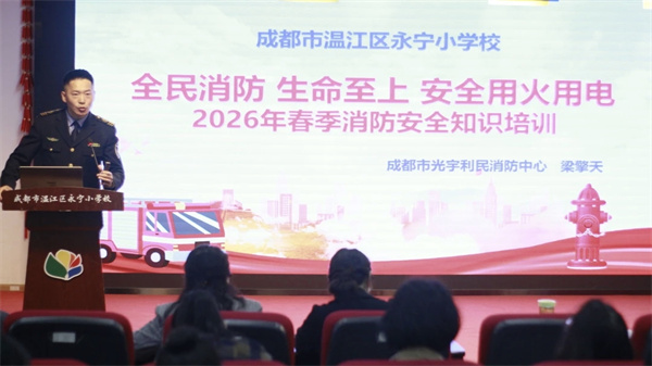 会议伊始,成都市光宇利民消防中心梁擎天警官开展“全民消防 生命至上”春季消防安全知识专题培训。培训现场实操演示海姆立克急救法,细致讲解体外除颤仪使用与心肺复苏规范流程,让全体教师掌握紧急救护技能。消防安全板块明确断电→报警→灭火→疏散逃生标准处置流程,系统讲解消防器材配备规范与使用要点,全面提升教职工安全防范与应急处置能力,为校园安全筑牢坚实屏障。