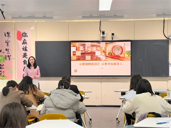 教导处副主任肖爽从教育教学评价改革入手,阐释了新时代育人导向下评价方式与教学行为的双向转变。她指出,课堂是育人的主阵地,激活课堂、优化行为,是提升教学质量的关键所在,并做细做实“四个一”英才计划,精心组织家长开放日等,让教学行为不止发生在课堂。