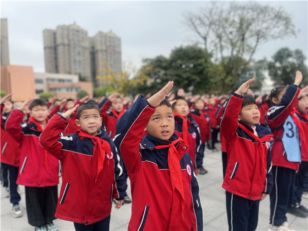 伴随着激昂的出旗乐曲,全体师生肃立注目。在雄壮的国歌声中,五星红旗冉冉升起,少先队员们高举右手,向国旗致以最崇高的敬意。这一刻,爱国情怀在每一个繁小学子心中扎根。