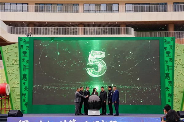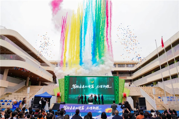 在全场瞩目中,新校启用仪式正式举行。受邀领导共同触启装置,全场齐声倒计时。礼炮齐鸣,响彻校园;彩球高飞,满载梦想。