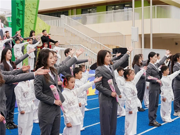 伴随着铿锵有力的《书生意气操》,开校典礼在操场拉开帷幕。鼓点激昂,少年意气,点燃了全场的热情。